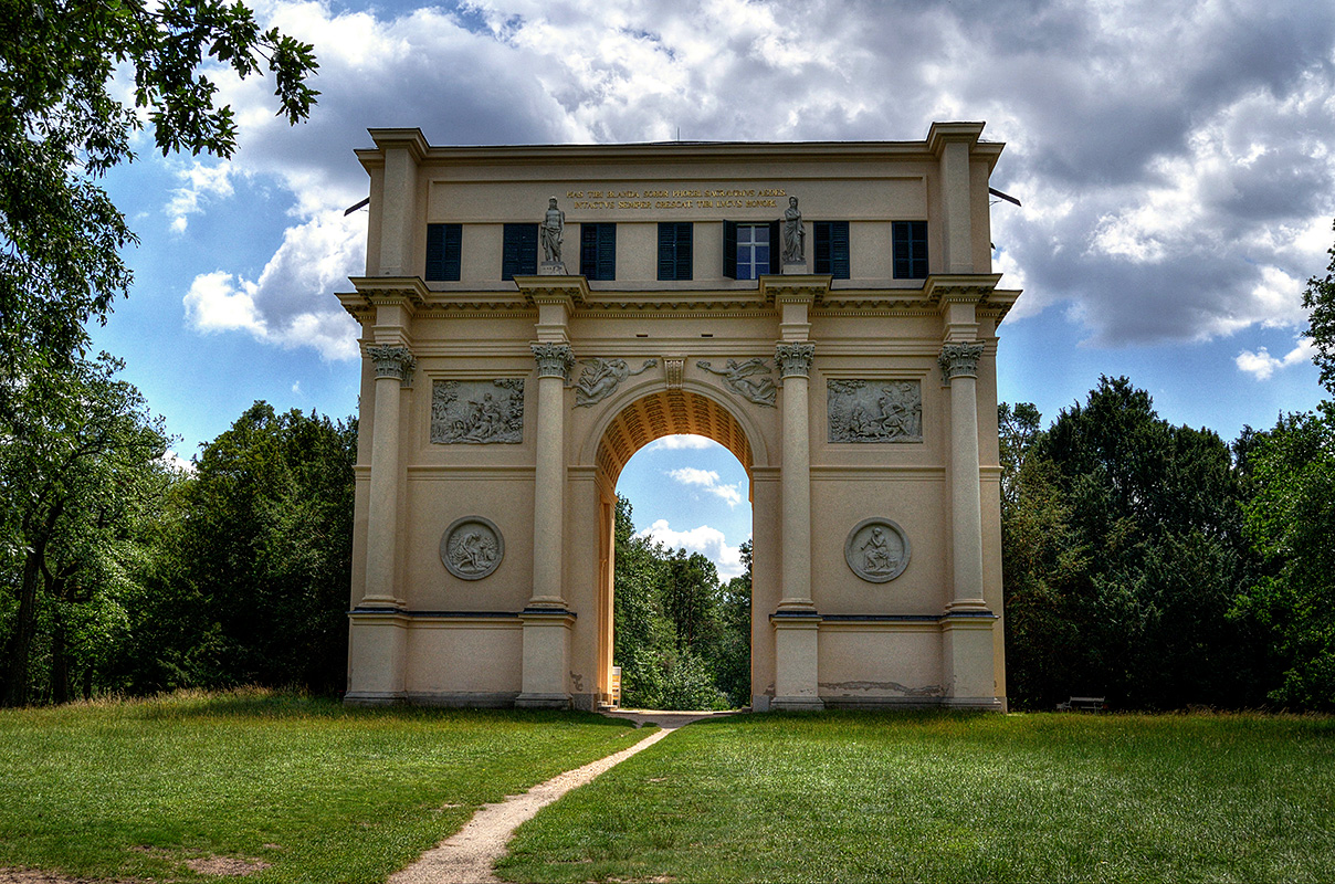 Dokonalost areálu vychází ze skvělé koncepce architekta, který pro nás připravil zcela neobvyklou scenérii zajímavých průhledů uměle vytvořenou krajinou. V této krajině, kde jsou roztroušeny objekty tvářící se jako stylové, hraje důležitou roli voda. Tvůrce s naprostou jistotou romantika kombinoval historizující prvky, provázející nás od Antiky, snad všemi slohy. Záměru podřídil svou práci tak trochu v Potěmkinově stylu. Pokud se přiblížíte k objektům, které působí zdáli jako dominanty, zjistíte mnohdy, že jsou vlastně "nakašírovány". Typickým příkladem je Janův hrad, který má v podstatě jen jednu budovu, přesto že se navenek tváří jako opravdový hrádek. Přesto však i tyto "umělé" objekty jsou schopny plnit i další než jen ozdobné funkce.